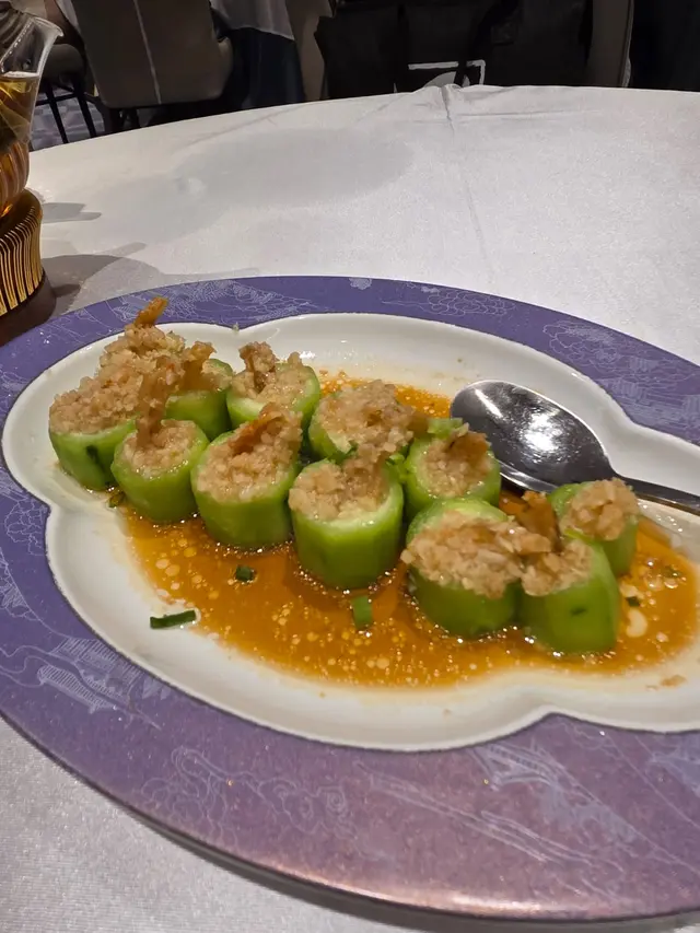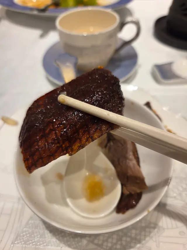 作為店內的鎮店之寶,燒鵝的表現堪稱完美。選用肥瘦適中的黑棕鵝,師傅以傳統工藝醃製,燒製時火候精準,鵝身泛著誘人的琥珀光泽。上桌時,鵝皮薄如蟬翼,咬下瞬間「咔嚓」作響,脆度令人驚喜;皮下脂肪融化成晶瑩的油光,滲入細嫩的鵝肉中,入口即化卻不膩口。肉質飽滿多汁,帶有淡淡的果木香氣,蘸上秘製酸梅醬,酸甜平衡更突顯鵝肉的鮮美。無論是單獨品嘗還是配搭米飯,都讓人欲罷不能。