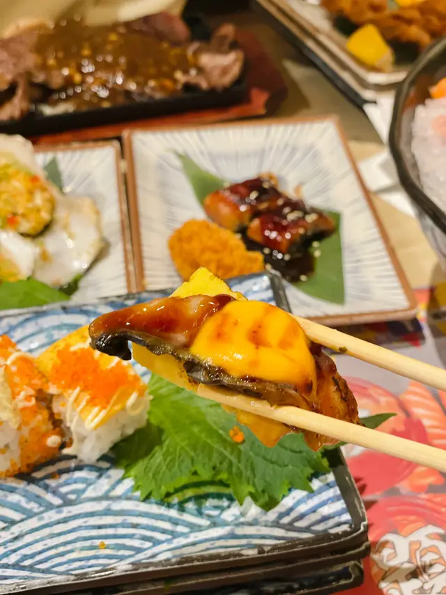餐廳熟食方面都出色,鍾意食西京燒嘅朋友一定要點,黑鱈魚🐟肉質細緻,魚肉帶有淡淡白味噌甘甜味,超滑!生蠔燒後依然保留蠔汁,加上蒜香濃郁,鍾意惹味既朋友要食呢個蒜蓉燒生蠔!鮑汁燴花膠一啲都唔吝嗇,大大件花膠炆得好腍又入味!