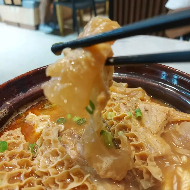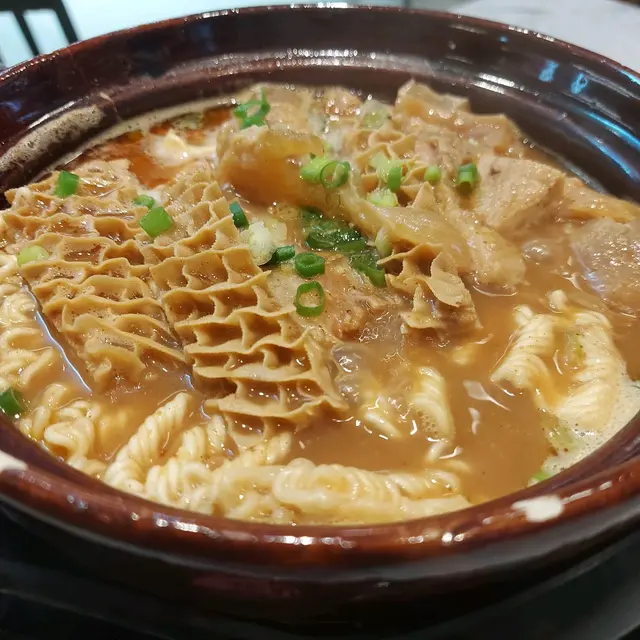 煲仔熱騰騰送上枱面,牛三寶滾下滾下非常特別,再配上店舖秘制沙爹醬濃郁湯底,味道更加香濃惹味😋😋