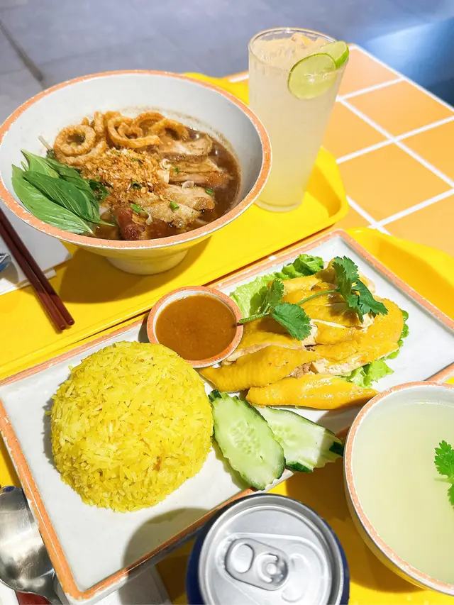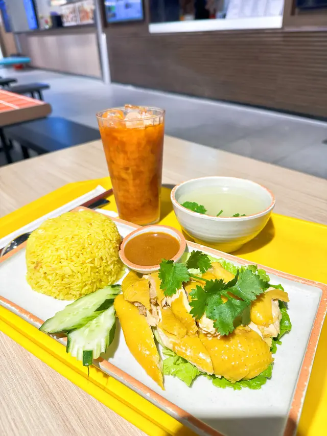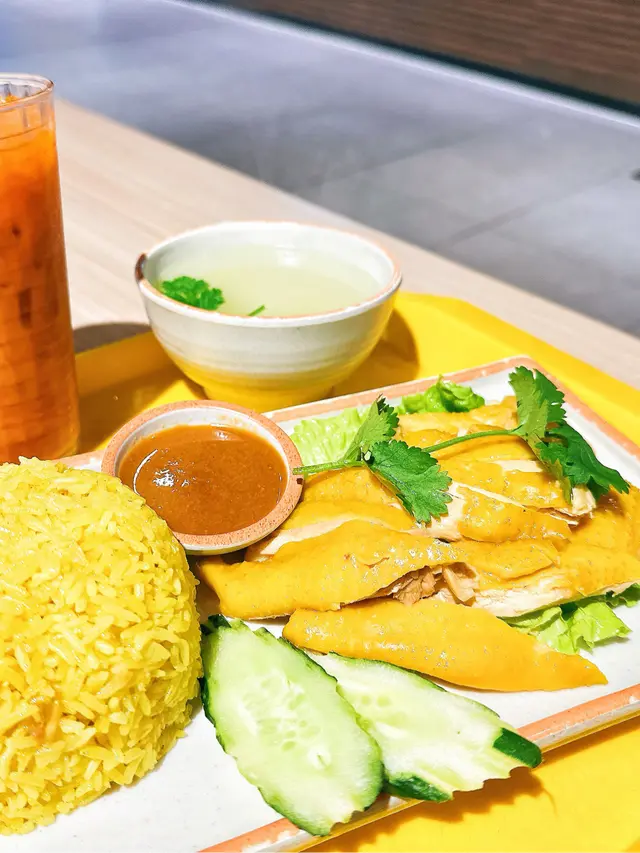 我叫嘅係泰式雞飯,成碟雞全部去晒骨,啖啖肉,食得好爽😋!而且雞肉嫩滑之餘又唔油膩,一定要沾埋呢度嘅特色泰式醬料食,多重滋味🤤! 而個飯係雞油飯,香氣十足呀🥳 雞飯仲配一個清雞湯,清甜唔油膩。另外加錢可換購飲品🥤非常滿足。