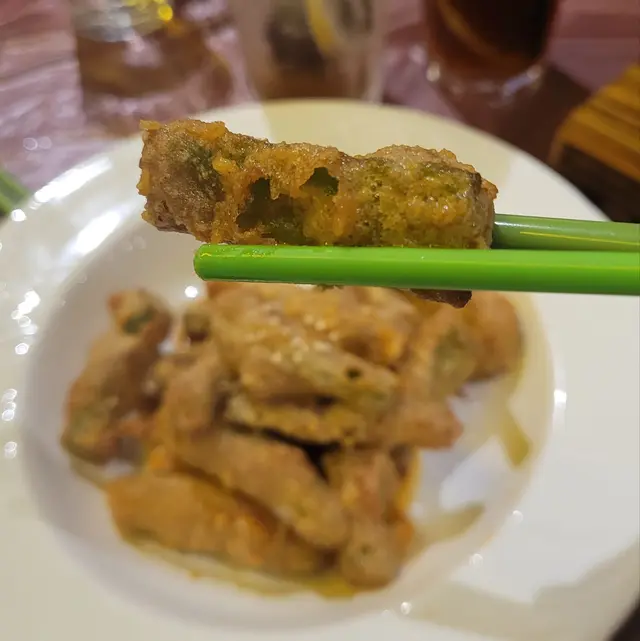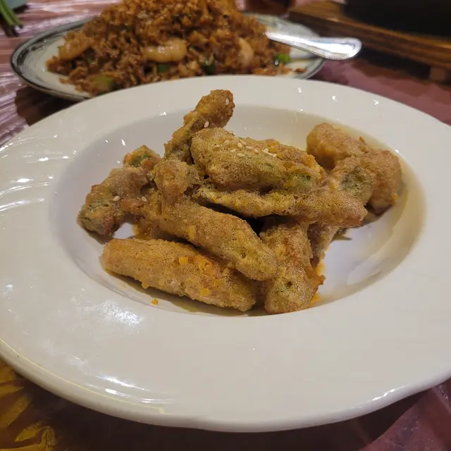 金沙涼瓜條先油炸過保留脆度,再加入大量鹹蛋黃拌炒,這味道真的是超迷人,讓不愛吃苦瓜的小朋友們也忍不住多挾了好幾條金沙涼瓜條,鹹鹹的鹹蛋黃滋味與甘香的苦瓜根本是天作之合。