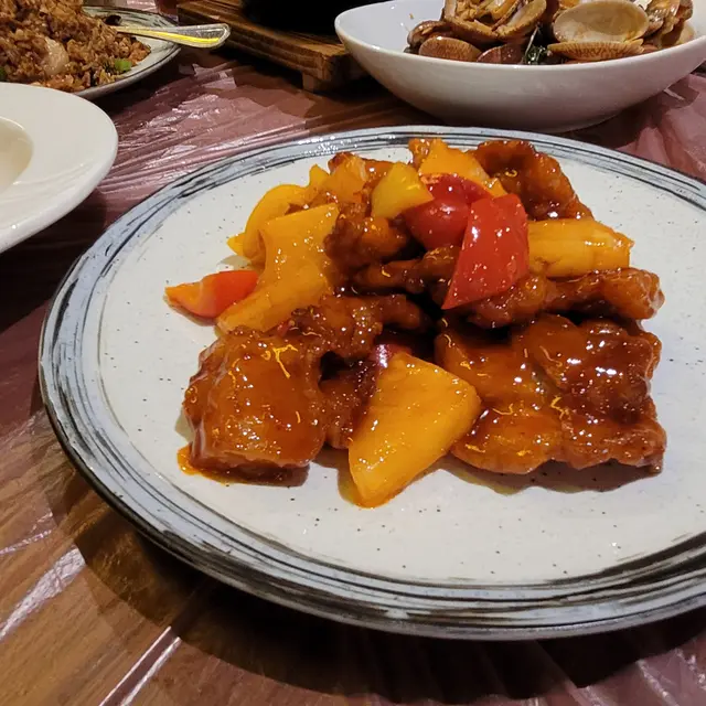 拔絲咕嚕肉將豬肉按摩醃漬後下鍋油炸,再搭配菠蘿、青椒,淋上獨家特調的咕嚕糖醋醬汁,拔絲咕嚕肉的外脆內鮮嫩多汁,加上咕嚕糖醋汁的酸酸甜甜,媽媽笑說配飯可以吃三碗。