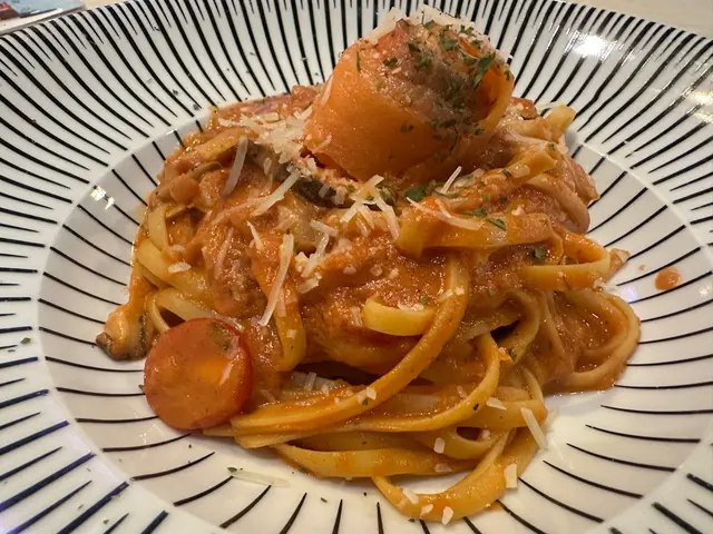 煙三文魚賣相不錯,卷成玫瑰花狀,有煙燻三文魚嘅鹹香及忌廉濃郁口感,蕃茄醬汁掛上扁意粉,酸酸甜甜勁開胃,份量亦都好多
