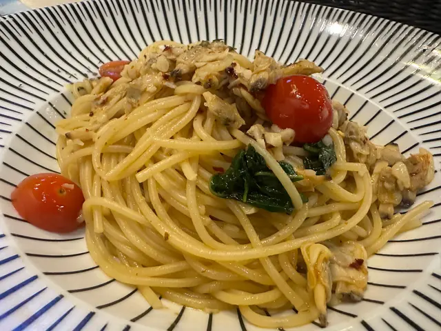 香蒜味頗濃郁,聞到些少白酒味,蜆肉都幾惹味,加入蒜香粒、辣椒、橄欖油炒香意粉,更煙韌彈牙