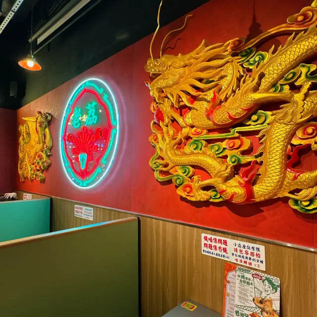冰室門外有一塊仿效舊戲棚嘅霓虹燈