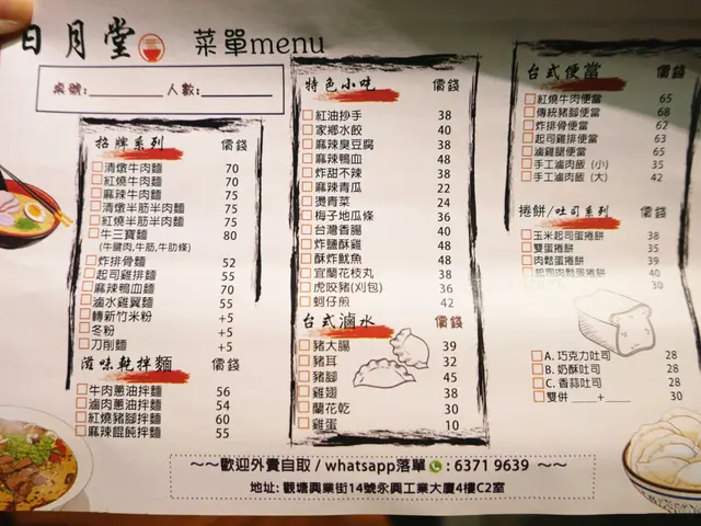 餐牌選擇不算少,供應湯麵、拌麵、便當、小食、飲品、甜品等等,價錢親民,不收加一服務費。