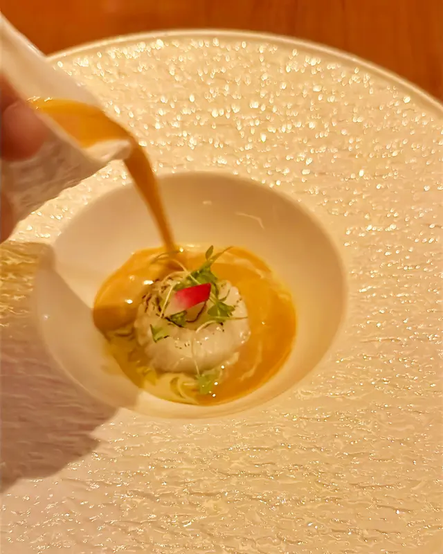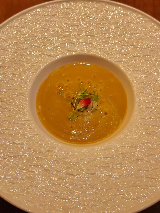 Hokkaido Corn Bisque : 味道濃郁嘅北海道粟米湯,配上蟹味噌及燒到出曬魚油嘅比目魚,口感更加順滑,非常好飲嘅粟米湯
