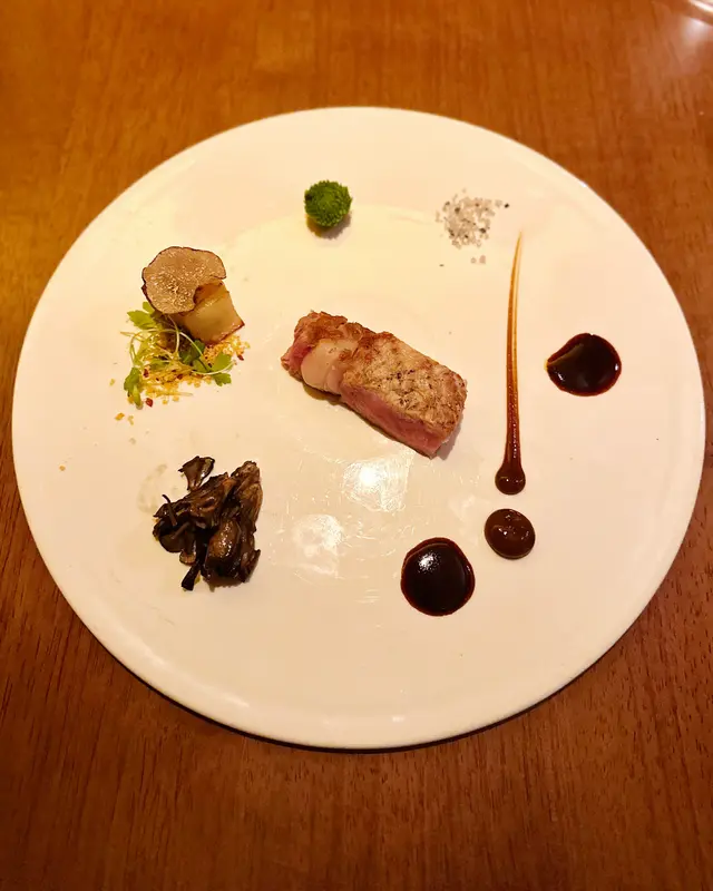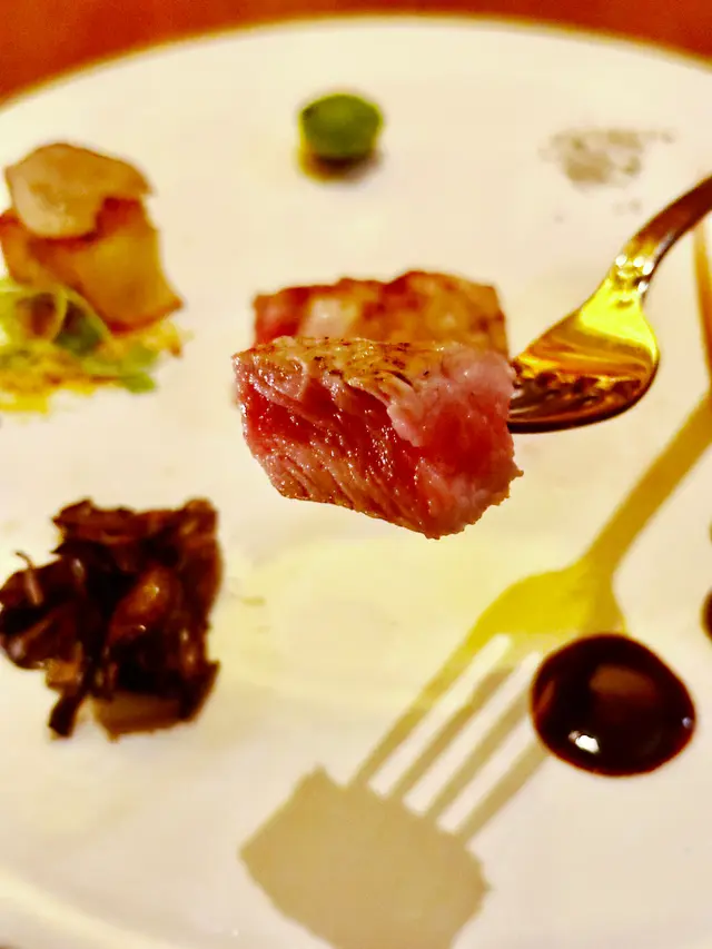 Charcoal-Grilled Dutch Veal Rack : 炭燒荷蘭小牛排肉,肉質粉嫩,配埋日本舞菇、黑松露千層奶油焗薯,精緻又美味嘅主菜