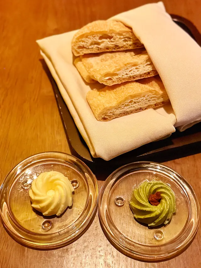 Homemade Bread : 自家製酸種麵包外脆內軟,配上 Rosemary & Garlic、Sundried Tomato 及 seasalt butter ,真係好味到要 refill