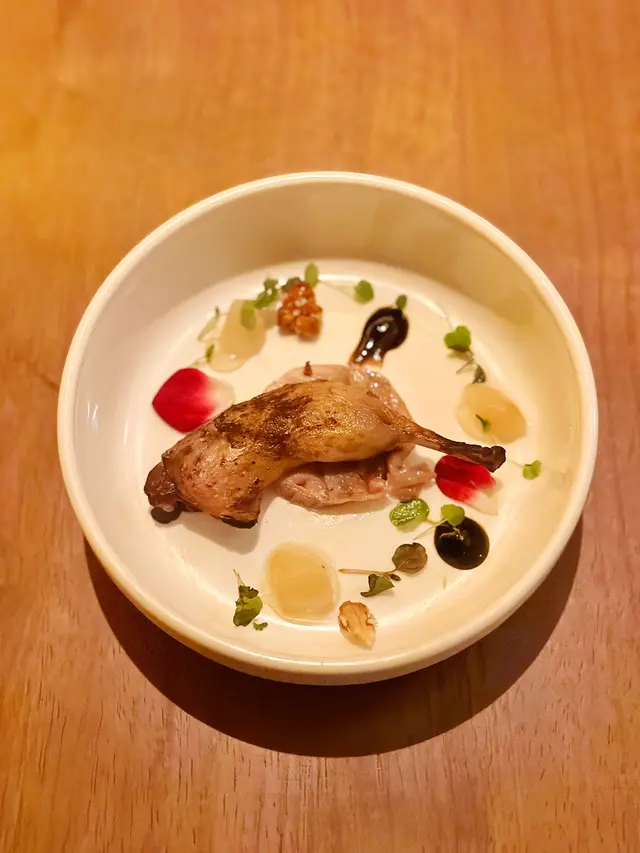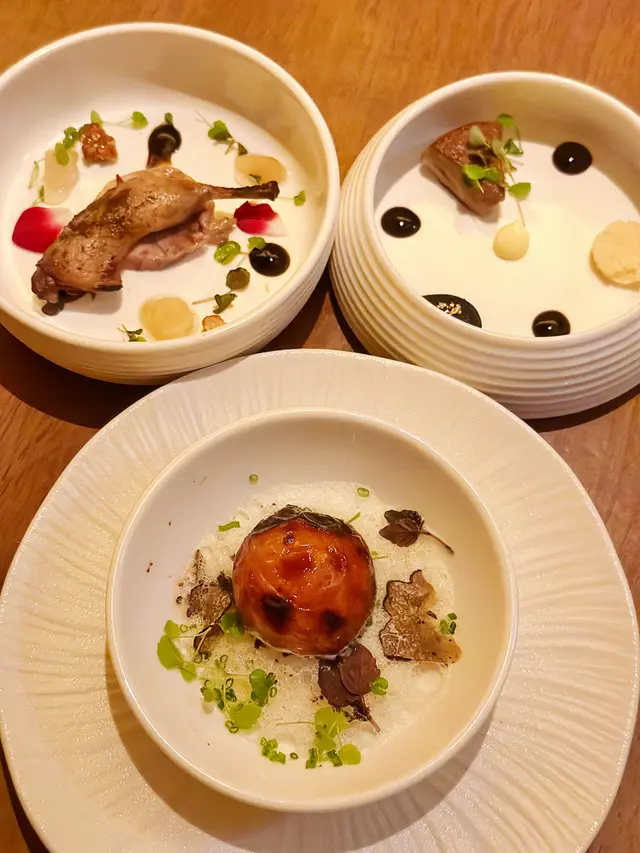 French Poultry Trio : 由一個三層嘅器具上枱,非常特別,入便有三黃雞肉丸、煙燻鵪鶉髀及鵝肝多士,係鵝肝多士果層仲有一粒超級濃郁黑松露朱古力,真係非常美味