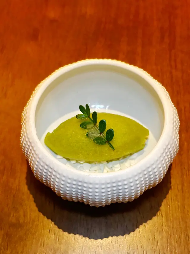 Apple Sorbet : 食完幾款味道濃郁嘅前菜,就食一口味道清新嘅蘋果香草雪葩,清一清味蕾,再準備食之後主菜