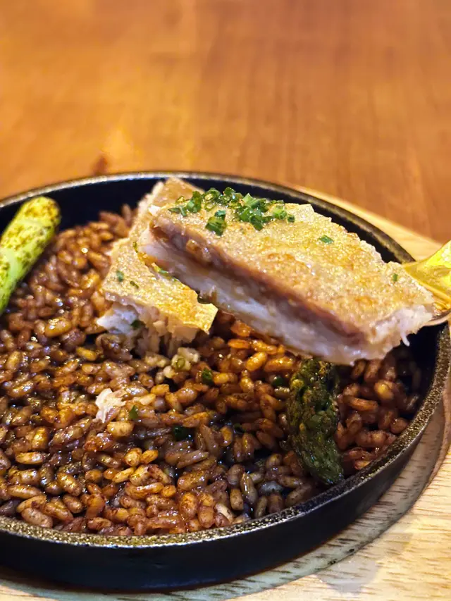 Spanish Paella : 馬友魚肉質細緻、油脂豐富,魚皮煎得極度香脆,配上加入龍蝦油嘅西班牙炒飯,充滿海洋嘅鮮味