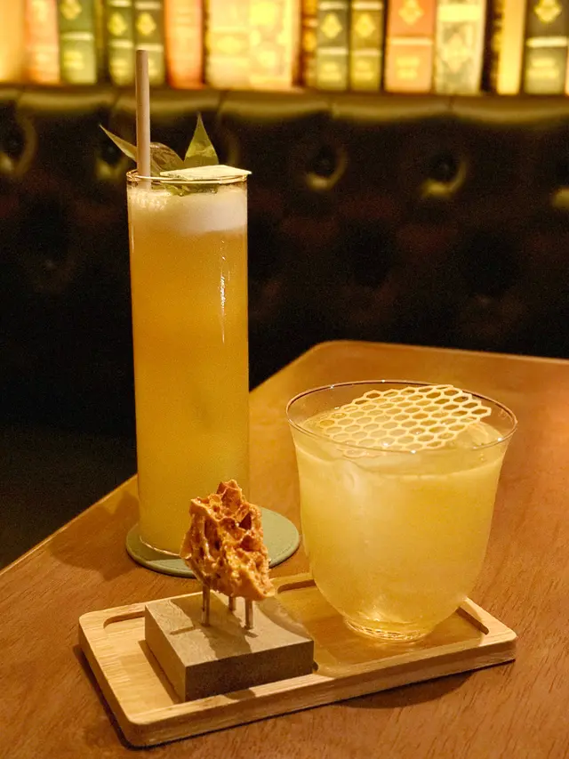 The Honey Thief : 用氈酒做基調、加入咖哩葉、杏桃果醬、檸檬混合而成,再加入蜂巢,味道帶甜,易於入口