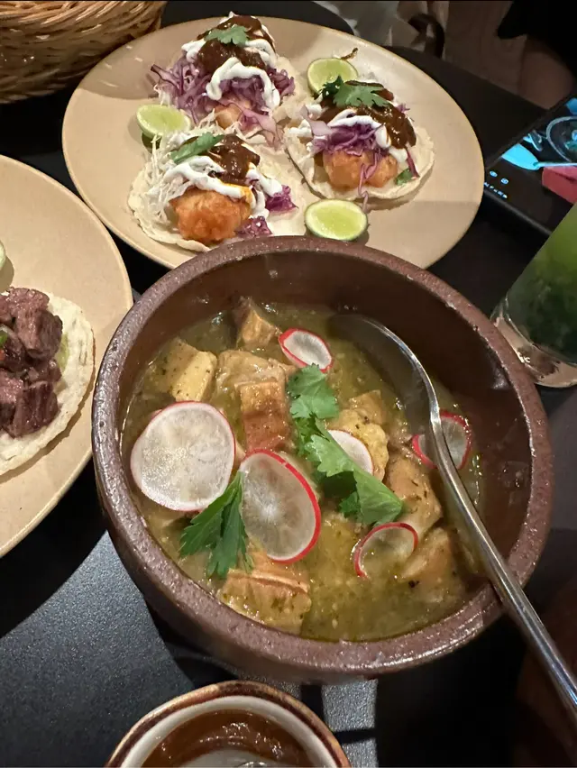 我點了「Carne Asada」(烤牛肉)Tacos,牛肉經過完美調味,肉質嫩滑多汁,搭配新鮮的洋蔥、香菜和自家製莎莎醬,味道層次豐富,每一口都充滿驚喜。另一亮點是他們的Guacamole,現點現做,牛油果濃郁滑順,配上微辣的番茄和青檸,與香脆的玉米片是絕配。此外,Quesadilla外酥內軟,滿滿的芝士牽絲令人滿足。