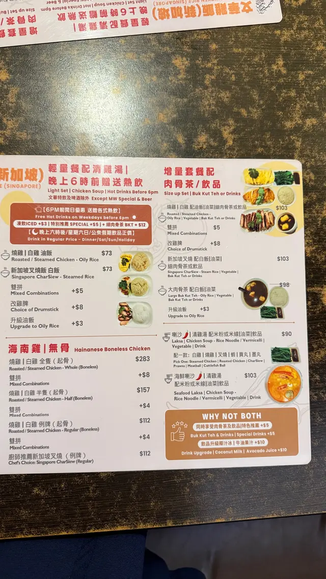 老闆專誠到新加坡學藝,亦深知香港的海南雞飯水準與新加坡的相差甚遠,尤其是正宗的燒雞海南雞。因此,他把真正的新加坡做法帶回香港,力求還原那份獨特的味道。