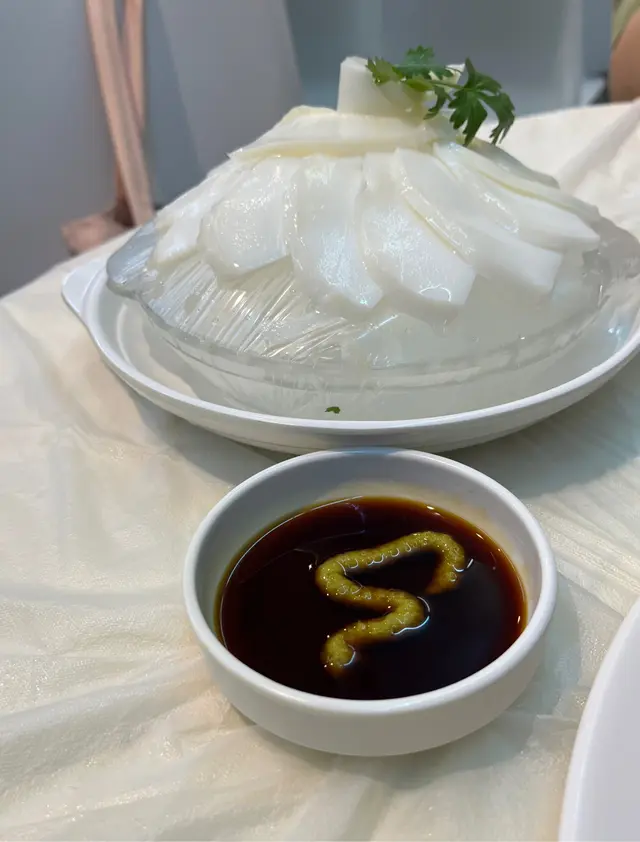 冰鎮墨魚$158 :厚身大墨魚鮮甜爽口,點芥末醬和豉油,有食刺身的清涼感覺。