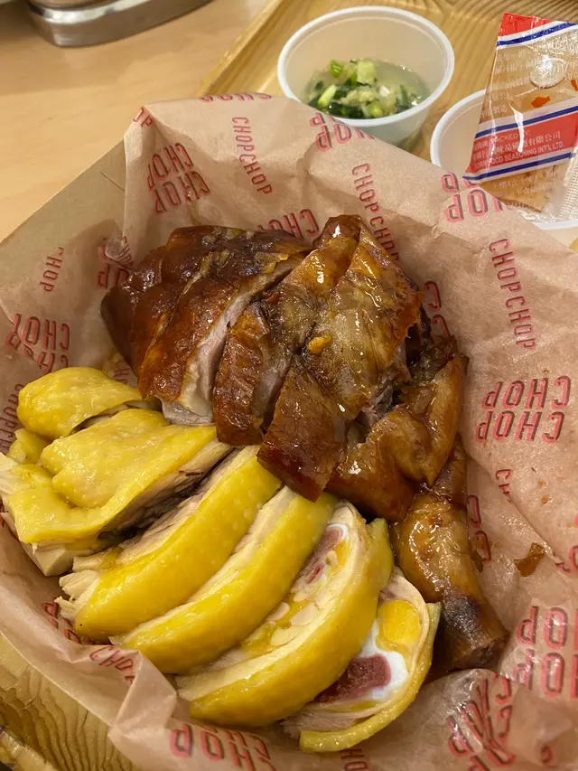 最後忍唔住都叫多份雙拼燒味,切雞加燒鵝。我非常肥美多汁。他們的燒味係值得一讚!