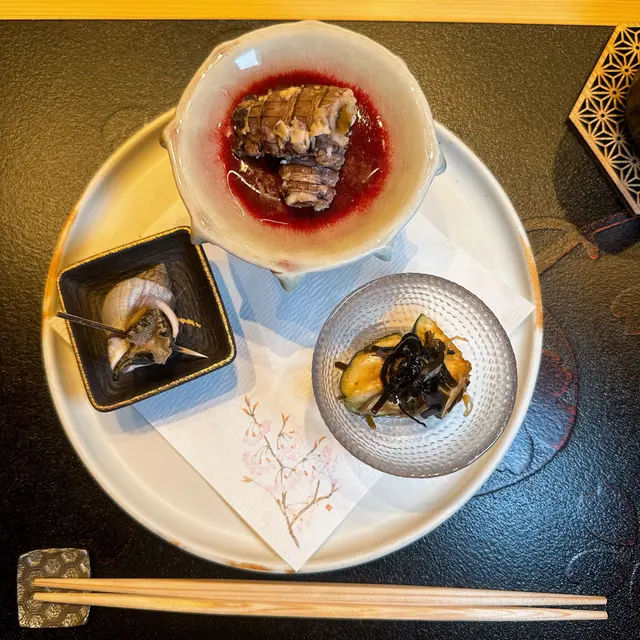 日本水茄子、汁煮磯粒貝、子持蝦蛄