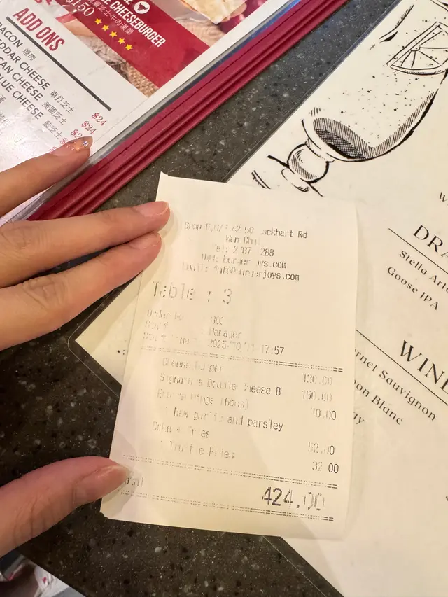 正宗美式漢堡 tiffy_lty等级42025-10-12 关注 佢地既招牌當然係牛肉漢堡🍔先講漢堡扒極度juicy,表面煎到焦脆,一咬啲肉汁就咇晒出嚟😚麵包亦都唔簡單,鬆軟得嚟充滿牛油香,加上熱熔嘅芝士生菜蕃茄同埋靈魂醬汁,口感味道都好有層次好滿足🤤佢哋嘅雞翼亦都好有驚喜,雞翼有唔同味道,有啲限定嘅味道。雞翼本身就炸得好酥脆,外脆內軟,熱辣辣好juicy,檸檬胡椒調味粉令到雞翼酸酸辣辣,令到味道更上一層樓🤩依家仲有買一杯啤酒送兩隻雞翼嘅優惠🍺而且burger選都可以簡combo set,有飲品加薯條🍟以上食记乃用户个人意见 , 并不代表OpenRice之观点。赞好分享正宗美式漢堡 Burger Joys (君悅居) https://s.openrice.com/QrLT0eSDU00检举 张贴 评分5味道5环境5服务5卫生5抵食用餐途径堂食
