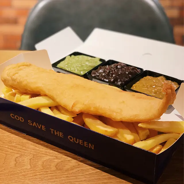 一場黎到,點可以唔食經典嘅炸魚薯條呢 🐟 炸魚選用鱈魚,厚度啱啱好嘅炸皮包住鮮甜嫩滑嘅魚肉,可以點上附上嘅茄汁同他他醬,或者加購餐廳特色青豆醬、咖喱醬、牛肉醬。薯條係英式傳統粗身薯條,口感豐富🍟