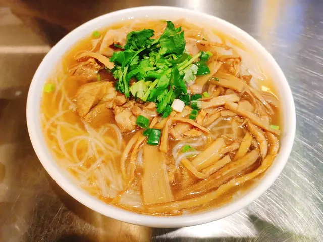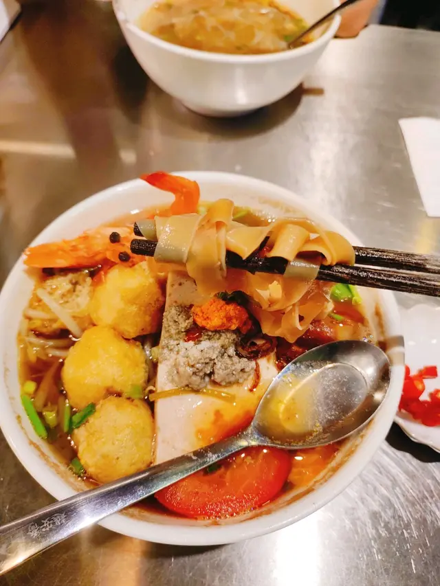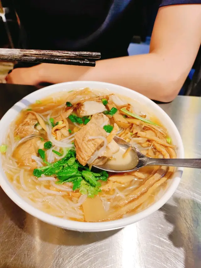 男友點自家制竹筍豬骨湯檬粉:表面有大量竹筍,入面有不少豬骨,湯底充滿鮮甜豬骨味,食得出冇味精,飲多幾啖都唔會口乾﹗