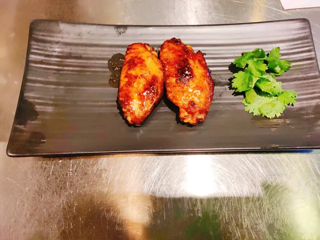 柑桔雞翼2隻:燒得好靚,皮焦甜帶點柑桔酸味。