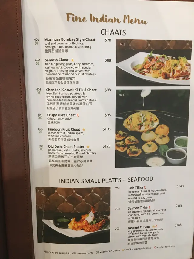 菜單上的咖喱首先分為素咖哩、雞咖喱、肉咖喱、海鮮咖喱四大種類,然後細分為各種不同的香料(如茴香、蕃茄、椰子、薑蒜、豆蔻等)和調製法。