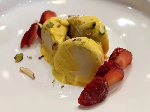 配上酸酸的草莓和脆脆的開心果,風味獨特,是結合了印度傳統與西式擺盤,東西合璧的一道菜。