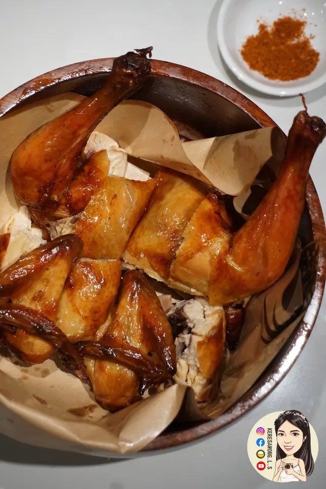 為餐廳招牌菜之一, 幾乎每檯客必點! 原隻雞上檯先滿足相機食先, 然後侍應取回廚房斬件。烤雞外皮烤得金黃均勻, 略帶點焦, 一咬外皮香脆, 散發濃郁龍井香氣, 除雞胸外, 雞肉都很嫩滑juicy, 果然稱得上人氣之選。