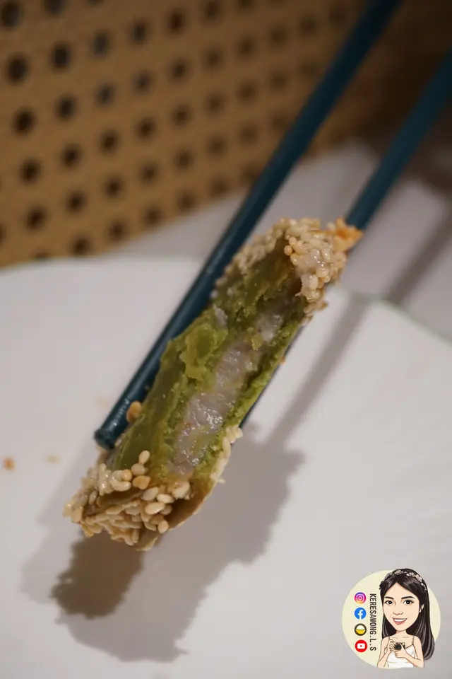 原來為熱食甜品, 綠茶餅夾住了甜甜地嘅芋泥, 餅邊沾上了大量芝麻, 香口又不會太甜, 很喜歡。