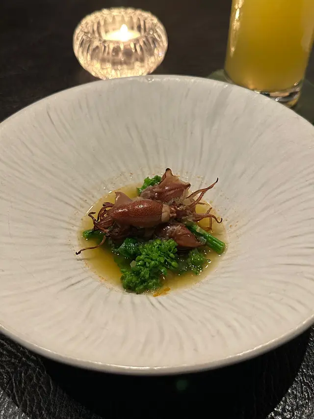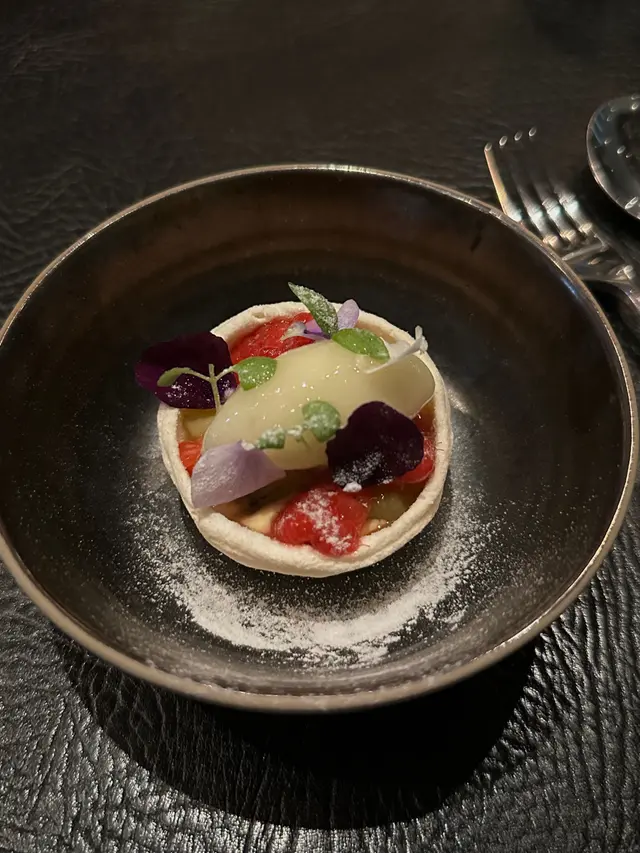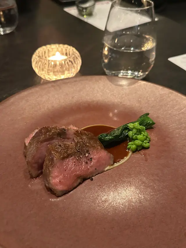這道洋蔥湯太特別了有被驚豔到,洋蔥的味道一點也不重,更突出的是檸檬百里香的味道。松葉蟹肉•甜菜頭卷•魚子醬的組合很驚喜,松葉蟹肉甘美裹入甜菜卷,魚子醬鹹香點綴,口感豐富