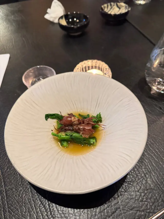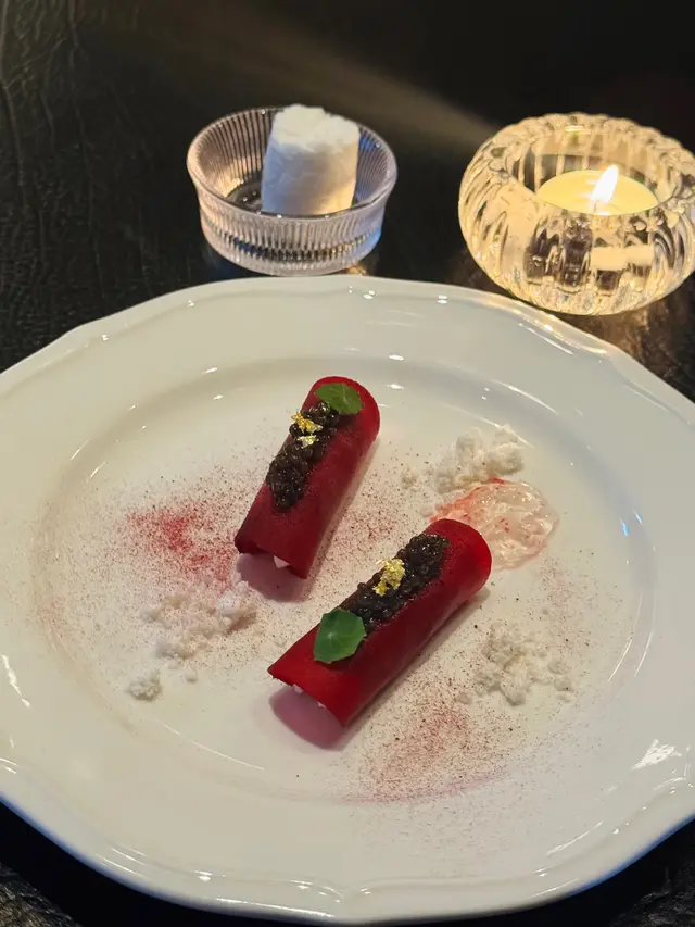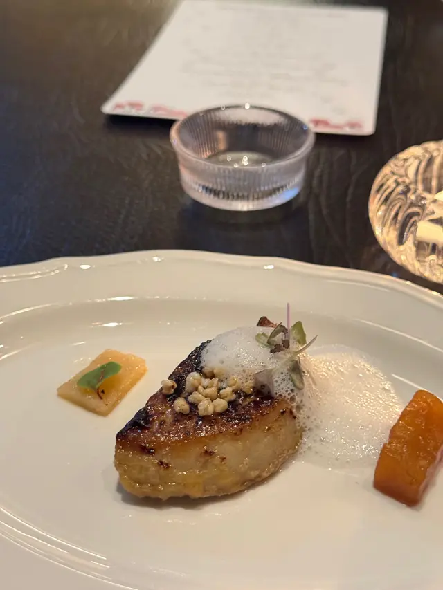 餐前小食已經好有驚喜,海膽配米餅香脆鮮甜,正式頭盤紅菜頭包住咗松葉蟹柳,面頭有魚子醬,點綴金箔。口感都幾多層次。鵝肝係當晚我最鍾意嘅其中一道,用煎封方式處理,表面香脆微焦,裡面保持住細滑嘅質感,食落香氣濃郁,配埋淡淡嘅泡沫醬汁同焦糖南瓜,味道平衡得啱啱好,冇一般鵝肝嘅膩感。