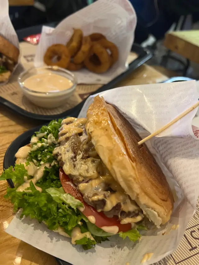 每日新鮮製造漢堡❤️🍔 missyhildanl等级42025-12-03 關注 最近發現尖沙咀有間新開嘅手工漢堡店一試真係有驚喜!😋 老闆係外籍人士,不過講普通話同廣東話都好流利,點餐完全冇難度。最欣賞佢哋對食材嘅堅持——麵包每日新鮮搓、牛肉餅每日手打、黑松露醬仲係從意大利入貨🇮🇹,真係誠意十足。安格斯牛肉漢堡煎得啱啱好,肉汁非常豐富,每一啖都充滿牛香。加埋瑞士芝士之後奶香更突出,口感好滑。炸洋蔥圈都幾出色,外層香脆唔油膩👍,成個組合食落去邪惡但好滿足~店舖面積唔大,大概只有十四個座位,位置偏緊湊,每日供應有限,建議早啲去。以上食評乃用戶個人意見 , 並不代表OpenRice之觀點。讚好分享每日新鮮製造漢堡❤️🍔 Burger Mate https://s.openrice.com/QrLT0TtLV00檢舉 張貼 評分4味道3環境4服務3衛生4抵食用餐途徑堂食