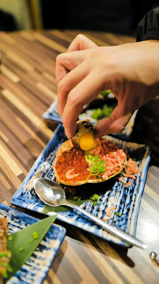 🦀 這個絕對是精華!將鮮甜蟹膏、蟹肉和鵪鶉蛋混合後,