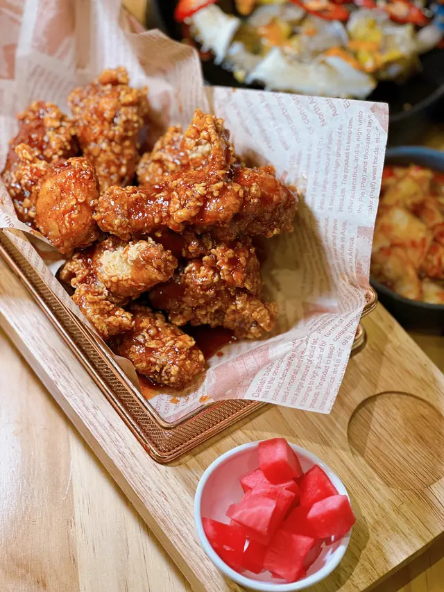 韓式柚子茶配韓式炸雞一流😜