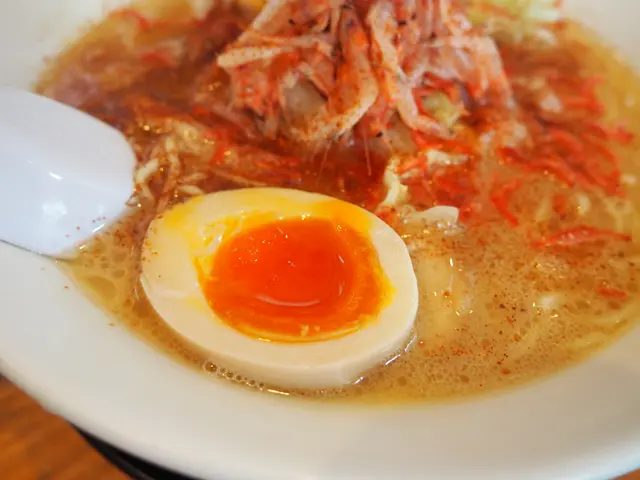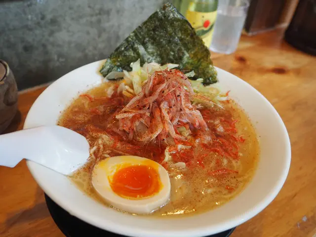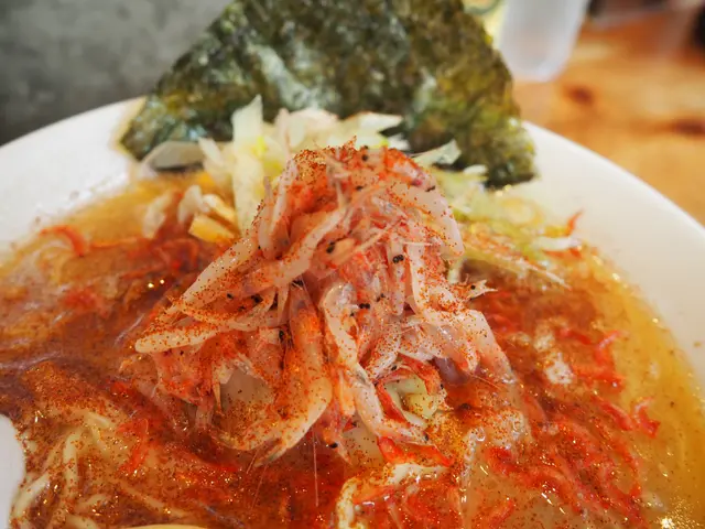 櫻花蝦刺身有如一座小山般舖在拉麵之上,搶眼度十足. 香味濃郁的鮮蝦油配搭上豬骨湯底,鮮味十足,友人說賣相與味道也不錯.