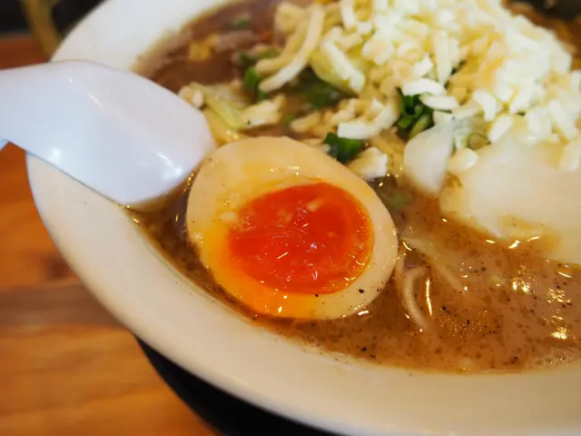 滿滿的芝士下是濃濃的胡椒豬骨湯底,呷一口,有淡淡的胡椒辛辣味,辣度輕微,但比起原味豬骨湯底特別. 麵條煙韌有嚼勁,再加上煮得剛剛好的糖心蛋以及入口的叉燒,相當滿足~