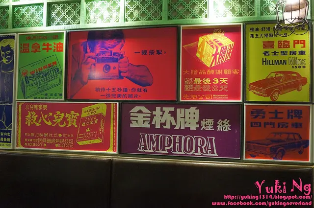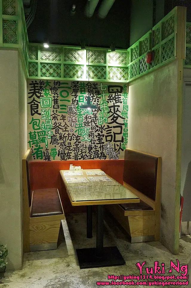 走進去看到牆身畫了昔日的廣告招牌,色彩繽紛的,其中我最喜歡的地方就是有一個卡位,牆身畫了模仿「九龍皇帝」的手筆,卡位自成一角,私密度甚高。