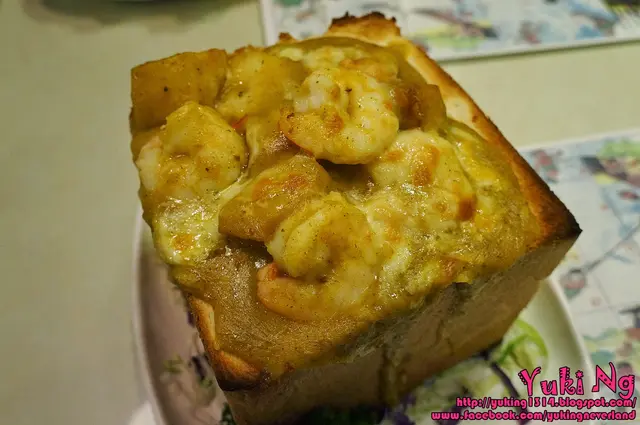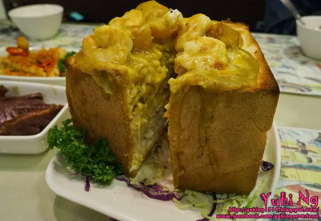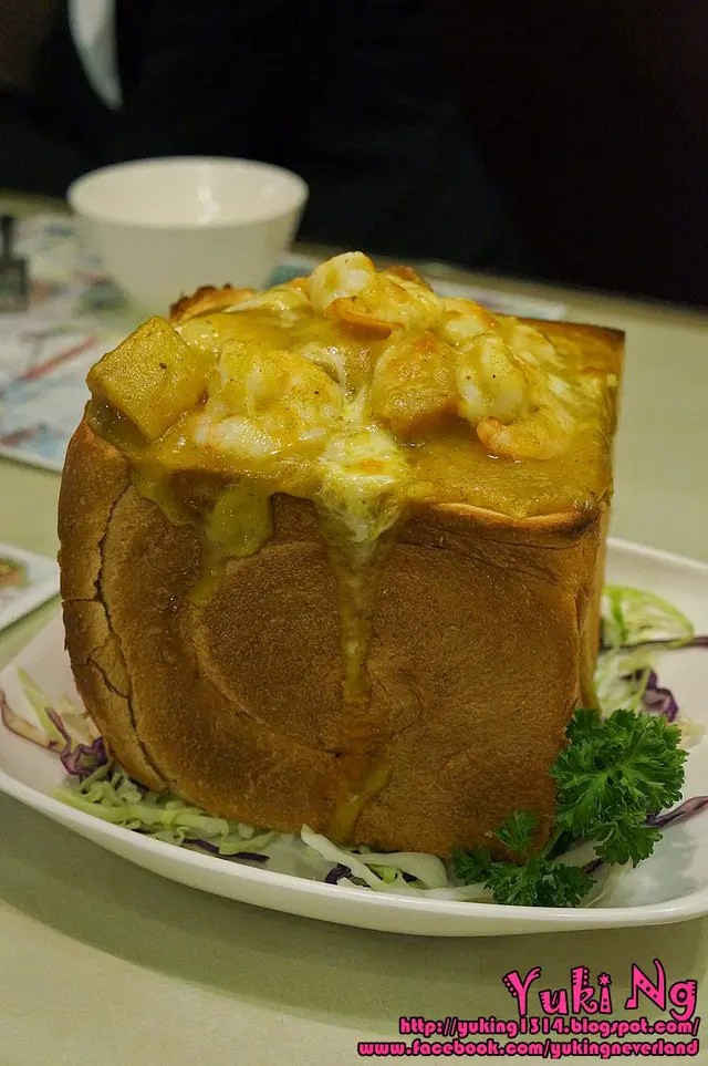磚頭焗飯賣相非常吸引,上面鋪上爽口的蝦,軟腍的薯仔,打開後發現,把中間的麵包挖空,大部分都是飯。不過飯的份量太多,而咖喱汁和蝦都偏少,比例不夠平均,而且飯是普通的白飯,如果炒過就更好。