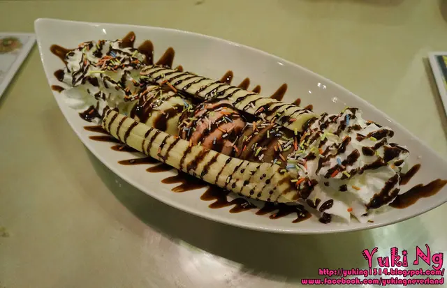 還記得小時候很喜歡的,經常吵嚷要媽媽點給我吃。朱古力、士多單梨、雲呢拿三球雪糕配上香蕉,是吃感覺多於味道的一道菜。