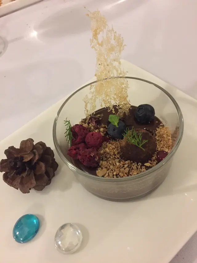 其中如家中火爐木炭樣子的主菜就是一幅完美圖畫呈現在大家眼前,還有最後的甜品可由我們自行設計,就像兒時寫聖誕咭的童真感覺真的很好啊.