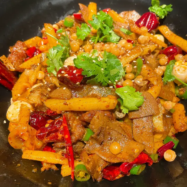 乾鍋嚟到即刻試吓土豆,見到好多辣椒好多香料,以為一定好重口味啦,點知一啲味都冇😑上次喺荃灣食嗰間係勁好食㗎🫠嚟到元朗依間好失望,再試下啲牛肉,全部過老,又柴又硬,最好食有味既就係啲寬粉。無可厚非係非常足料,全部份量都對得住價錢,但係未到真係好麻麻。希望下次會有所改善。