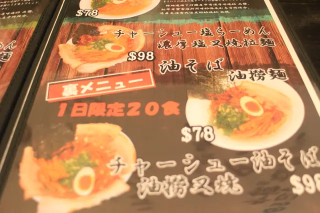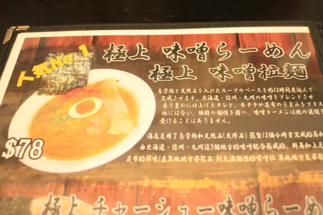 我倆分別叫來了「濃厚鹽叉燒拉麵」($98)和「極上味噌拉麵」($78)做午餐。