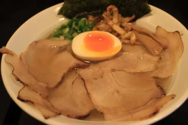 至於湯底與麵條方面,兩款湯底都有一定的水準。聽說這裡是用鮮雞、雞腳、豬手、冬菇等,加上數隻新鮮烏雞和特別的天降石經十二小時熬製而成的,鹽味醬汁用的是有名的沖繩海鹽,而味噌醬就混合了九州、信州和北海道三地的品種製成,用以作為大湯的調味,喝來兩款湯底的味道都還不錯