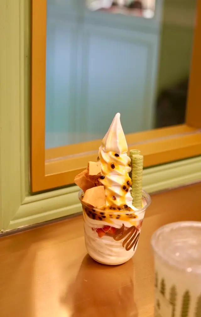 人气topping海盐焦糖脆脆有点太甜了,柠檬芝士蛋糕当天卖完了就换了抹茶蛋卷,草莓粒放在冻酸奶中间口感变了好多,最喜欢的还是酸酸甜甜的百香果酱