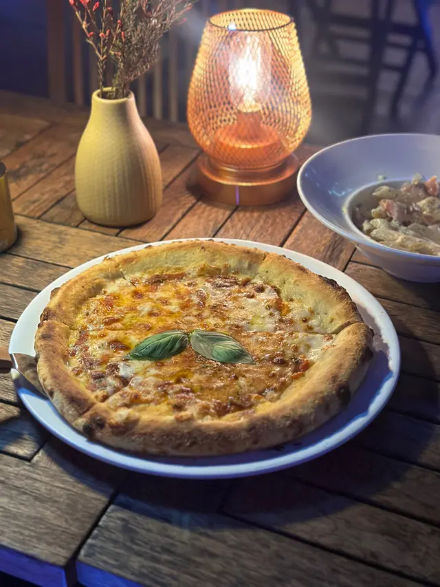 這道披薩的手工蕃茄醬和新鮮的水牛芝士完美結合,濃郁滋味。