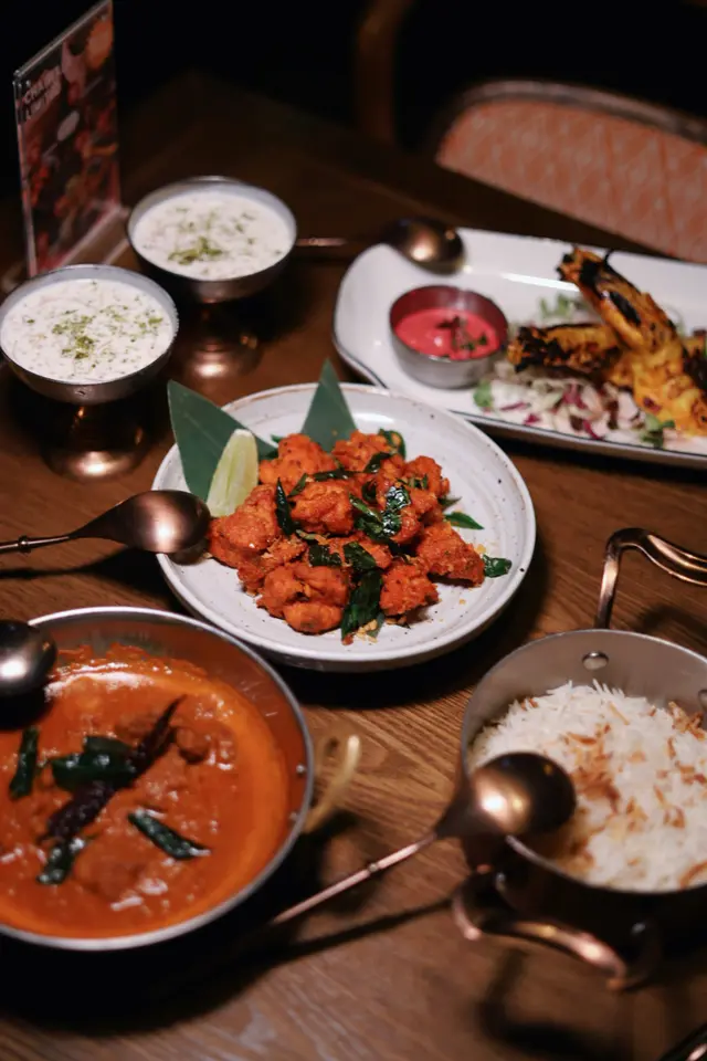 南印度經典炸雞。雞肉用麵粉、優格及多種香料醃製,炸得酥脆,一口一粒不會很油膩🍗 旁邊還有檸檬片🍋平衡香料的濃烈感