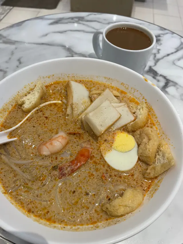 曾經有一段時間,土司工房是我的飯堂,晚飯諗唔到食咩就去食喇沙。相隔左一段時間再嚟,叫左我最愛😍嘅喇沙同南洋咖啡,價錢由40幾蚊已經升到60幾蚊...喇沙嘅份量同埋配料都少咗,得寥寥可數嘅魚片,豆卜,半隻蛋同唔太新鮮嘅蝦🦐,同埋略為碎嘅米線。湯底都算濃味,但有一種係自己屋企廚房Hea煮嘅感覺😞,同我回憶中嘅味道已經相距甚遠,就算有優惠券送,相信都唔會再幫襯第二次。☕️咖啡同之前飲嘅冇太大分別,微酸中帶點煉奶嘅香甜味。