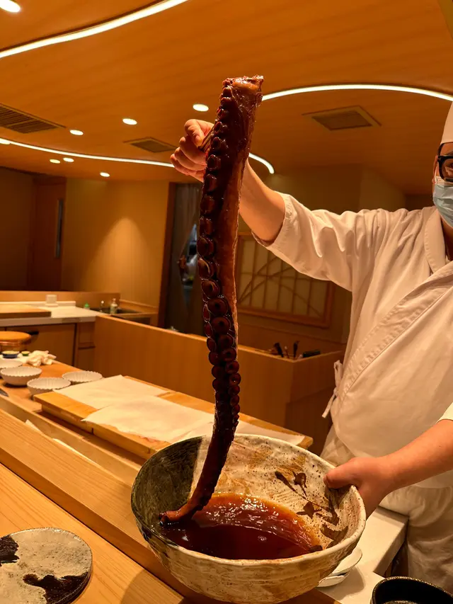 師傳夾起一整條八爪魚好令人注目,讓我們好好地可以影相🤭