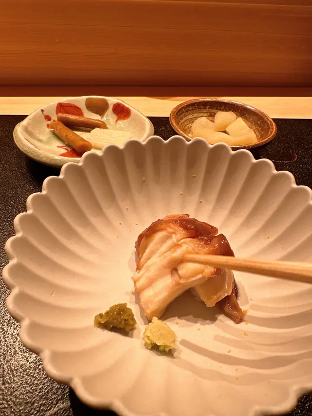 八爪魚質感柔軟,配Wasabi或柚子胡椒味道更鮮甜。